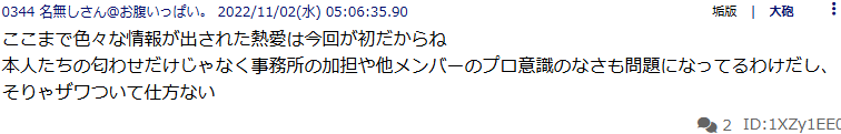 匂わせ情報が次々出てくる中、当然ショックを受けたファンも多く、もっとプロ意識を持って欲しいという厳しい意見もみられました。